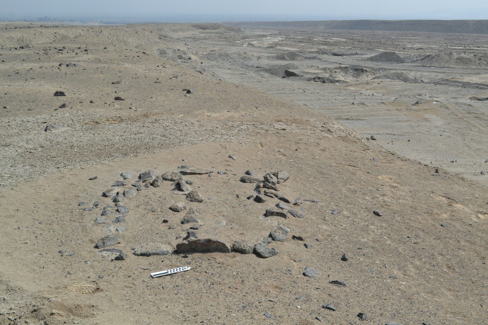 Across the hyper-arid pampa lands above the valley, the Paracas peoples built linear geoglyphs: designs etched into the desert landscape that they lined with small field stones. We found five sets of lines that all concentrated on the five major Paracas sites at the edge of the pampa. We also found many small structures built between the lines.