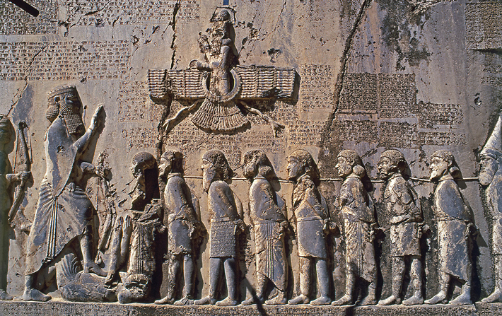 (Babek Tafresi/Gettyimages) CARVED INSCRIPTION. FOUND: Bisitun, Iran. CULTURE. Achaemenid. DATE: ca. 500 B.C. LANGUAGE. Persian, Akkadian, Elamite.